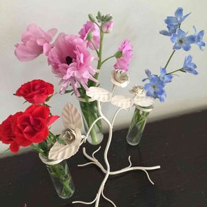 数ヶ月前に鉢植えで買って、植え替えしたらどんどん枯れていってしまったので、とうとう根付きのまま花瓶へ。 大好きなレトロ花瓶のほうが意外にも雰囲気良くなったかも😁白のレトロで小さ過ぎず大き過ぎず、何でもしっくりきて手触りもお気に入りのフラワーベース✌🏻