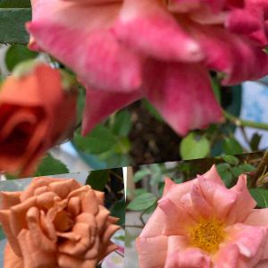 こんな風に 一つの幹から色の違う薔薇が咲いています♪♫💕 カフェも、レインボーも、アンネも… 今は 一度に見られる…