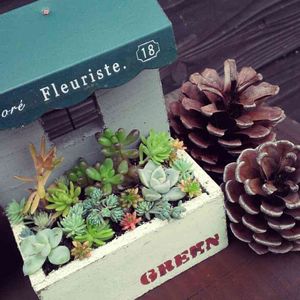 リメイク缶が3つ入る多肉ちゃんのお家をDIY したので、先日寄せた多肉ちゃんを飾ってみました~(*・∀・*)ノ これがシェアハウスか。。。(^w^)