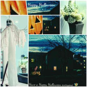 New York 🌃 Happy Halloween 🎃 Part 8(Part 7もご覧下さい)Part7と同じゴーストとお花の別アングルと近所の夜景+ジャクオ.ランタンのハロウィンイメージのフォトコラージュです。👻✨