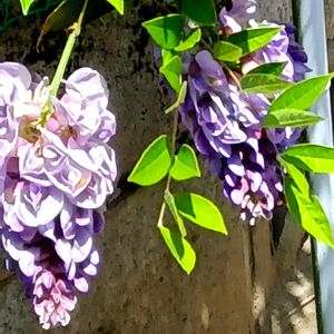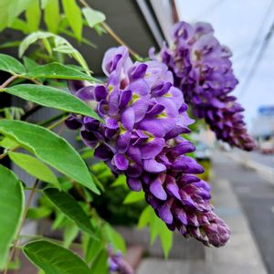 今日のお花「藤」を2枚 アメリカフジ💜 (アメジストフォール) 紫色が濃くて素敵な花です 何年前でしょう? 京成バラ園で一目惚れしてお連れしましたが繁殖力が凄く我家は小さな庭なので剪定してここまでが精一杯の大きさでしょうか😅