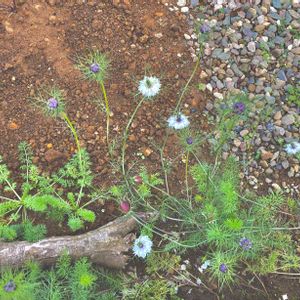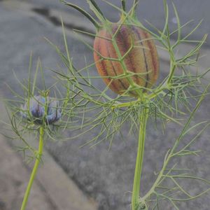 大きくなれなかった日陰のニゲラ 種子膨らんで2番花も小さいけど咲いて 何度も踏んでしまい割り箸で ギブス… 近所に教会はありませんよ