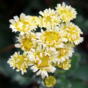 【ハナイソギク(花磯菊 )】 日本原産、キク科多年草 イソギク(自然種)とイエギク(栽培種)の自然交配種。 黄色い管状花と、白色または淡い黄色の小さな舌状花からなり、舌状花の大きさは様々。 葉の表面は白みを帯びた緑色で羽状に浅く裂けることが多い。 草丈:30-40cm 開花時期:10~12月 花色:白・黄色 ときわ公園@宇部市