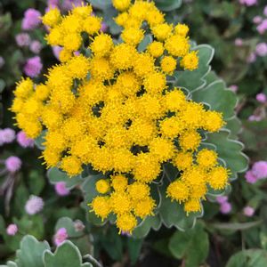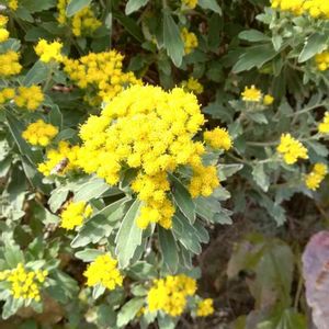 イソギク 鮮やかな黄色のポンポン 葉っぱだけの時も素敵です。