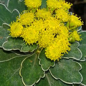 丈夫で黄色の小花が可愛らしい毎年咲いてくれる イソギク✨ 白いふちどりのようになっている葉っぱも素敵…🌿 🏷️8日は葉っぱの発表会に参加さ せて頂きます🌿