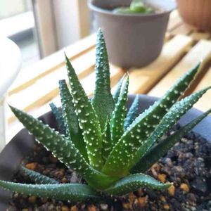 今日のハオルチア🍀は「白青城」です。 成長はしてるんだけど、ちょっと徒長した感があります。んー、やっぱりハオは難しいなぁ~😅。