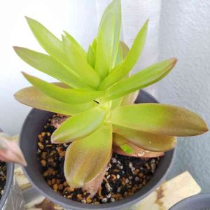 エケベリア属 ブルーバード。 我が家に来て2年の夏越し完了したら、随分と不格好になっちゃった。 ロングドレスみたいに、上向きだった葉っぱはうなだれて、やっぱコレって徒長? う~~~ん、、、どうなってこうなった??