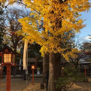 夕暮れ時の神社の境内。銀杏は大分散ってしまって黄色のフカフカ絨毯が出来上がっていました。