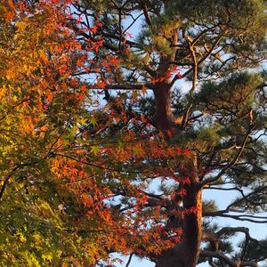 緑の松と赤く染まり行く紅葉。日本の秋です。