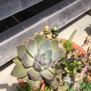 名前を教えてください! 先日、大きめな園芸店に言ったら、なんと以前は少なかった多肉植物が増えていました! エケベリアとしか書いていなかったのですが、お安かった のでつい買ってしまいました✨