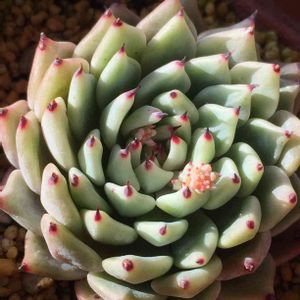 寒い風の吹く中。。 凍えそう。。 多肉ちゃん達シャキン👍💓 葉先がポチポチ紅くて可愛い💓 一月にお迎えしたけど。。 段々素敵になって。。たまらん😜