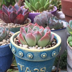 おはようございます✨ lier ,多肉フェスの思い出💕 当日、最終日2日参戦したよ💕 言う事無しのフェスティバル🍀lier .papa、lier ,familyには大変お世話になりました☺️✨ ★buchiさん作足付き鉢にリエール苗を仮に飾ってみました☺️👆鉢も苗も.。本当に可愛いっ❤️ 楽しかったぁ〜〜😊💓💓💓 左のお肉はヘラと言うお名前👆