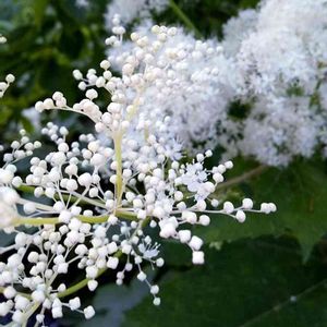 ご近所さんの木。 白いつぶつぶからフワフワに進化中。 追記 エルダーフラワーと教えていただきました。 ありがとうございます☺