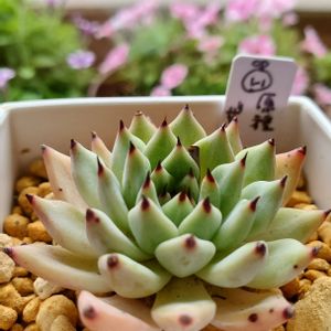 多肉屋芽吹さんの原種ザラコーザ💓 春から変わらずゆっくり成長中~✨ ピンクからグリーンのグラデーション😌❤ とんがった黒爪、反抗期の息子みたい😁 結局かわいい(笑)