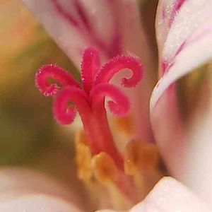 ナツメグゼラニウムが咲き始めてます 蕊の形可愛く 花弁にキラキラ粉まぶしてるみたいでした 久々マクロ撮影( v^-゜)♪