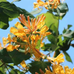 夕方の散歩中にスイカズラ発見。 いい香り。 子は蜜を吸いまくってました。