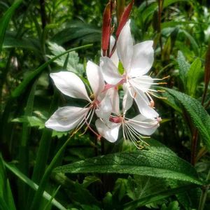 咲き始めのガウラは、まだ花茎が短いです。 風に揺れる姿は、もう少し先かな。 先代ネコが好きで、よくチェックしてたっけ。 見に来てるかな。