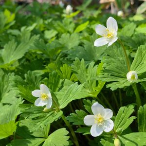 お散歩。 エゾエンゴサクと一緒にこんなお花達もさいていました。 ①アヅマイチゲ ②ナニワズ ③エンレイソウ ④ネコノメソウ ⑤チオノドクサ