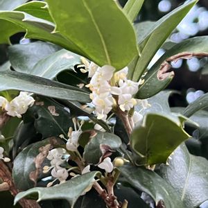 【柊】《モクセイ科》 花言葉 「用心深さ」「先見の明」「保護」「歓迎」 ヒイラギ(=柊)の漢字の中には「冬」という漢字が入っています。 これはヒイラギが、冬が訪れると共に花を咲かせることに由来した漢字だそう。 「木」と「冬」とで成り立つ感じから、いかに冬を代表する植物としてとらえられてきたのかがよく分かります。 また、ヒイラギという名前の読みにも意外な由来があります。 「柊」と書いて「ヒイラギ」と読むのは、葉の縁のトゲに触れると痛いことから、「ヒリヒリ痛む」ことを意味する「疼ぐ(ひいらぐ)」という古語が語源になり、徐々に「ヒイラギ」 という和名へと変化していったのだそう。