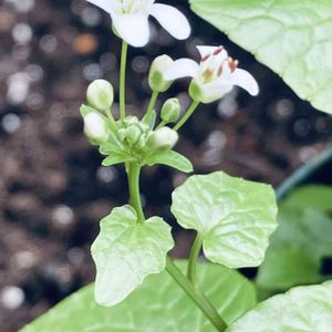 冬を越し花が咲きました♪〜 わさびの小さなお花を 🤍🤍🤍🤍🤍🤍 清々しい気分になります^_^