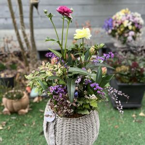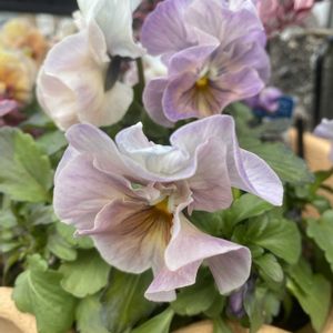 フリル咲きパンジー 🌸シエルブリエ🌸 毎年お迎えしていたシエルブリエですが、今回はご縁がなかったと思っていました。 最近値下げされていた苗を見つけてウキウキ💕 銅葉のおしゃれなロフォミルタス マジックドラゴンを入れてハンギングにしました😊💓