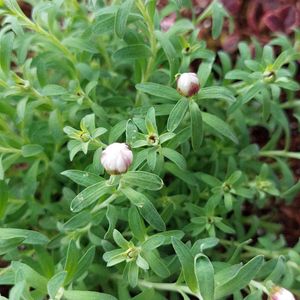 植え付けて2週間くらいですが ぎゅっと固く閉じたままの 花かんざし🌸 花びらがカサカサするというので お店にあるのを失礼して触ってみたら 本当にカサカサしてました(^^) 早く咲いてね(*˘ ˘*)✿*:・゚ マジックドラゴンさんの色も素敵です❣️