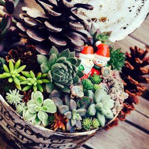 ちょこちょこっと、 余った切り花を寄せ集めて、 アレンジしてみました。 クリスマスとしてメジャーなお花ではないけれど、 どこかクリスマスの雰囲気がある。 そんなところが気に入っています。 サンタさん達ものんびりしていて、 ほっこりした気持ちになるのも好きです。