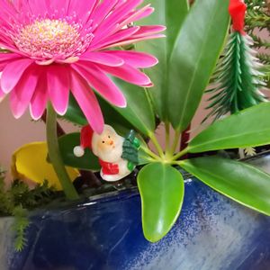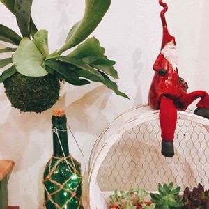 サンタさんが居るだけで 夏っぽいテーブルヤシも クリスマスの仲間入り