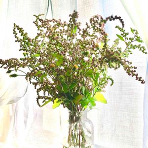 おそようございます 昨日河川敷で茂っていたシロザの紫があまりにも可愛かったのでコセンダングサと合わせて飾りました 実物はもっと鮮やかな紫で動きのある穂先が綺麗です ただ実なのでよく落ちます