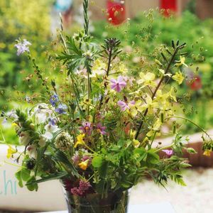 こんにちは…😊 今日は休み… 雨が降らなかったのでゆっくりと土手を散歩して、可愛い雑草アレンジを作りました💮💮💮 ヒメコバンソウ、ヒサウチソウ、シロツメクサ、ヒナギキョウ、ホソムギ、マツバウンラン、ヒメフウロ、アメリカフウロ、ニワゼキショウ、カタバミ…庭のマーガレットとヒメツルソバ、ハボタンをプラスして…