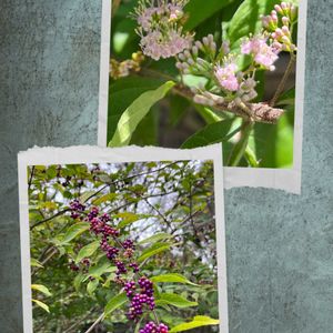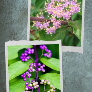 おはようございます🌅😊✨ 今朝も晴れてかなり冷えてます🥶❄️🧊 ✨今日のお花✨💚💜ムラサキシキブ💜💚です😆👍✨💕 過去の写真です😆👍✨ コラージュ写真です😆👍💜💜💚💚 可愛らしい実とお花です😍🥰💕🌸🍒