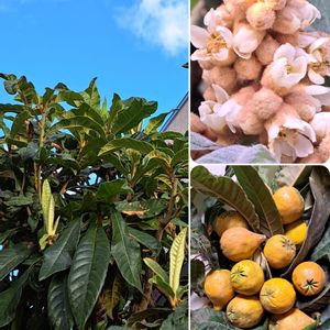 おはようございます🌅😊 今朝は晴れて冷えてます☀️🥶❄️🧊 ✨今日のお花✨🧡🌳ビワ🌳🧡です😆👍🌳🧡 いつもの散歩道で、お花と実を撮影しました😆👍 1️⃣ ビワのお花と実のコラージュです🌸🧡✨😆 2️⃣ ビワの実だけのコラージュです🧡✨😆 3️⃣ ビワの木の樹形です🌳🧡✨😆 この樹形だけはコラージュ無しです😆👍🌳🌳🧡🧡 夏に熟す枇杷の実、甘くて美味しいデス😋 大好きです😘😋🧡 そして冬に咲くお花も、可愛らしいですね🥰🌸👍💕💕 お花も、甘い香りがします🥰😘💓
