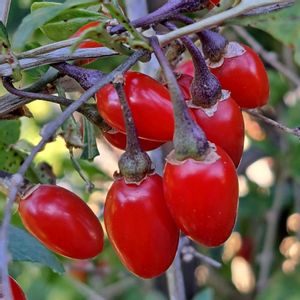 2025.12.5(金) GS今日のお花【クコ】 畑の主のご自宅のフェンスに🔴🔴🔴🔴🔴 今年は沢山の実🔴 甘く美味しいクコの実🔴 花言葉 ・誠実 ・お互いに忘れましょう 零れ種からの銅葉金魚草 銅葉でない‥‥ かかりつけ医の裏口の 山茶花の木 蕾が沢山 点々に見えるのは蕾♪ 楽しみな山茶花🌸 おまけ ぐんまちゃん🐴 雪に難儀している花友さん ご安全にお過ごしくださいね🙏 🏷️イロイロ付けさせていただきます✨😌✨💐😍🌿🍀🐴 予想気温(10/-1) 月齢(🕛)14.8 am.8:14 満月🌕 am3時西の高いところに月齢(14.5)見る👀 pm.725.(15.2) pm9:31(15.2) pm10:01(15.3)