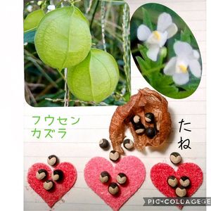 ✿GS今日のお花✿ 🎈フウセンカズラ お花🤍、実💚、種🐵をコラージュしてみました😁 昨年10月