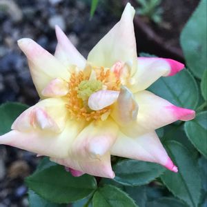 持って来た鉢植えの中のバラが咲きました 長岡のご近所さんから頂いたリオサンバらしきバラです