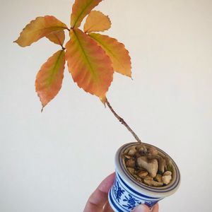 どんぐりから育てたコナラの小品盆栽 今年は綺麗に色づいた