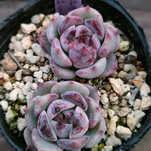 こんばんは😄 昨夜の暴風雨も凄かったですね☔ 我が家の多肉達ヤバいくらい濡れまくってますが元気です😂 ちょこん、右は自分で買った子、左はお友達のJUSHIちゃんに頂いた子💕 両方とも紅葉は醒めてしまったけれど大きくなってきました🙌 ちょこんは初めて育ててるのでまだ我が家の環境でどんな感じに育っていくのか分からないんですが😃 夏越しが難しいと教えてもらいました💦 たぶん片親がカトーさんかグロブローサだろうなと勝手に予想しております🤭 どちらかがもし親だとしても、交配に使うと強いから何とも分からないですが初めての夏越し頑張ってみます😆 夕波、この子もJUSHIちゃんから😊 だいぶ大きくなってきましたよ🙌 もう少しで2号鉢いっぱいの大きさだ😆 ストロベリーミルククラウン、この子は別のタニ友さんから頂いた子🩷 色が凄いでしょ🤣 雨に濡れまくって少しマシになりましたが別の葉挿しっ子はもっと凄くて🤣 この子本当に可愛く育つのだろうか😮💨 ハルビンゲリ、今日写真撮るのに探しまくって何とか見つけました🤣 やらかした時に植え付けた時の大きさ5mmだったんですが、今日久しぶりに見たら1cmあるかないかくらいに成長してくれてました😂 今年はちゃんと育ててあげなければ😰 エケベリアは5mmあれば根っこなくてもちゃんと復活しますから👍 私は何度も経験しておりますのでね🤭 皆様どれだけ小さくても諦めずお水あげ続けてあげてくださいね🤭