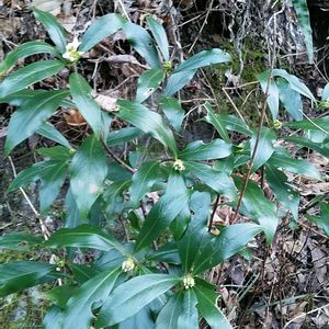 道路脇でコショウノキを見つけました。開花していました。 ミヤマウズラも見つけました。