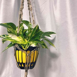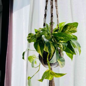2021.11.11 本日お迎えしたポトスマーブルクイーン🧚🏼 白と緑がすごくかわいい💕 すごい王道観葉植物だけど、気分を上げたくて買ってしまった😅 プラントハンガーは 久しぶりに編んだよ✌️