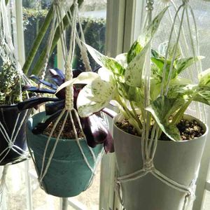 100均の紙紐でマクラメハンギングが3つ出来た✨ 耐久性、強度、編み方色々実験中👀