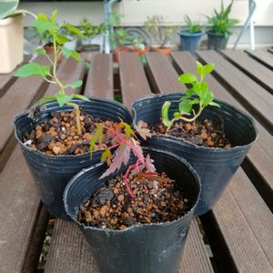 こんばんは♪今日の一枚です😊 南京ハゼ親子です。苗から育てて一年で35cmくらいにまで大きくなってくれました。お母さん、長女、次女と思い思いの人生を枝のクネクネ感で出してみました。 これから葉っぱが真っ紅になるのが楽しみです🎶🤗