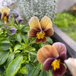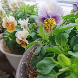 こんにちは〜😊 🌸ビオラ🌸 フロステッドチョコレート レディ ドレープ・シエナ 先日お気に入りの園芸へ行きました🚗💨 色とりどりのパンジー・ビオラに 興奮したり感動したりともう大変🌸✨ 感情を抑えきれず 爆買いしてしまいました〜🤣 狭いベランダ 置き場所大丈夫かな〜😓💦 一株で植えるか 寄せ植えするか 全てを植え替え終えるまで 時間がかかりそうです😆