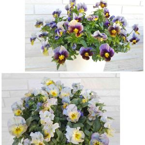成長記録📸 植え付け時に投稿し忘れてたフロステッドチョコレートと恋みやびの2株植えです✨ 少しずつ春が近づいて花数が増えてきました🌺🌷 花日和さんのビオラはとても花付きが良くて、淡い優しいカラーがお気に入りです🥰