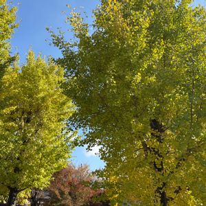 11月16日(日)☀️ こんにちは(о´∀`о) お出かけ先にて 紅葉のグラデーションと秋の空 気持ちがいいお天気です🎶