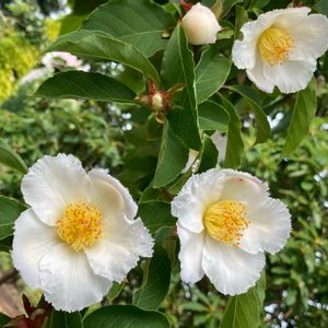 🏷2023百花魁に参加させて頂きます ツバキ 太郎冠者(有楽椿) 侘助系では花が大きく色も明るい 咲いた時は、一重のラッパ咲きで華やかです 今年は早くから咲き始めています 室町時代頃に中国から輸入された椿の原種と 日本の藪椿との間にできた椿 侘助椿の原種とされている 織田信長の実弟、小田有楽斎長益が茶花に愛用 京都では有楽椿、江戸では太郎冠者と呼ばれる