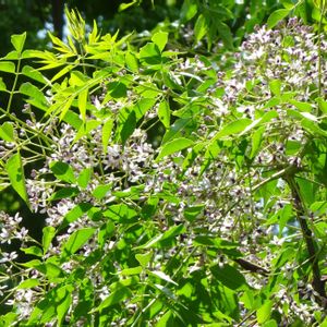 カイノキ(楷の木) 別名ナンバンハゼ(南蛮櫨) トネリバハゼノキ クシノキ(孔子の木) ランシンボク(爛心木) カイジュ(楷樹) 直角に枝分かれする事や小葉が整然と揃っているので 楷書にちなみ名付けられた 大正4年、林学博士の白澤保美が中国から種子を持ち帰り、今の"林試の森公園"で育て各地に頒ち植えられた 孔子の墓所に植えられた事から学問の聖木とされ各地の孔子廟や儒学に関係する所に植えられている 牧野富太郎はクシノキ(孔子の木)と命名した 中国、台湾、東南アジア原産 ウルシ科カイノキ属 落葉高木 雌雄異株 ウルシ科のピスタチオと同属で近縁