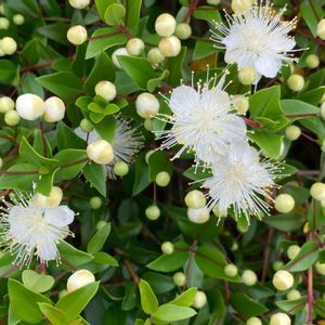 ギンバイカ(銀梅花] フトモモ科ギンバイカ属 常緑低木 地中海沿岸原産 長い蕊と純白の花弁 蕾も丸くて可愛い花です 葉にユーカリに似た芳香がありハーブとして(英名マートル)古くから利用されて来たそうです 実も果実酒などに利用するそうです