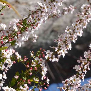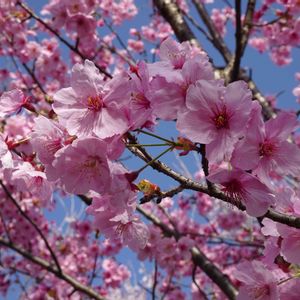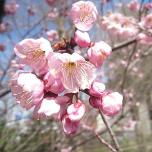 椿寒桜 (初美人) 高知のマッシーさんに教えて頂いた桜 名札を見るとこちらでも咲いていました 河津桜に次いで咲く 寒桜と唐実桜の雑種 愛媛県松山市の伊豫豆比古命神社(椿神社) に原木がある 密集して次々と花を付けかつ散りにくい 花弁は盃状 蕊が長い 果実はできない