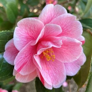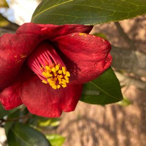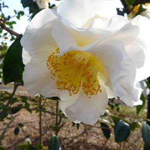 椿 白い大きなフリルがドレスのようです 蕊が山茶花のように沢山ありました