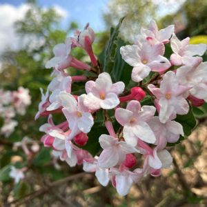 ニオイガマズミ ピンクの花とグレーがかった緑の葉が 優しい雰囲気です 近づくといい香りもしています